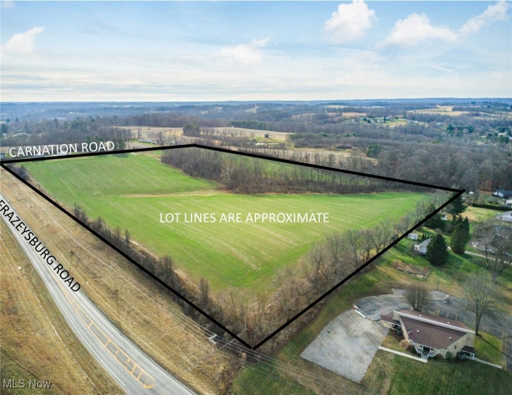 Absolutely stunning piece of property, excellent for residential development. First time offered, just off Frazeysburg Road (SR 60) in Nashport. This site offers strong development potential including ample frontage from Carnation Road, public utility availability, flexibility in layout and a convenient location just outside of Zanesville, yet only a few minutes from schools. Topography is slightly rolling with current use being agricultural. Property is restricted for single family use, single family development, or agricultural use. Potential sketches of layouts are available under attachments.